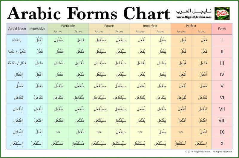 Arabic Forms Chart by Nigel of Arabia