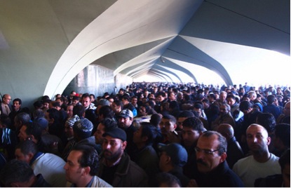 We arrived at the airport to find it overwhelmed with people, a mass of bodies trying to get into the building. As the taxi driver steered us as close to the airport as he could go, he turned up the radio with Gaddafi’s speech raging out, in order to antagonise the people. Surprisingly the taxi driver did not overcharge us and we were happy to see him go, but now it was just us and the crowd in front. There were thousands packed so tightly that there was not even any room for luggage, so while some held their bags above their heads, others left theirs in a pile, forming a sea of suitcases around the crowd.