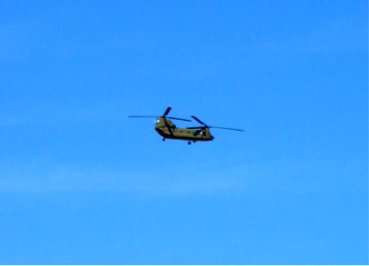 From our balcony we observed a convoy of four Chinooks flying over the area. They made their way back and forth several times towards the city centre, presumably transporting soldiers to secure the Green Square where most of the events in Tripoli were said to be occurring.